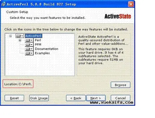 activeperl的下载和安装比较简单,这里不再赘述。我安装的是ActivePerl-5.14.2.1402-MSWin32-x86-295342.msi,下载地址: