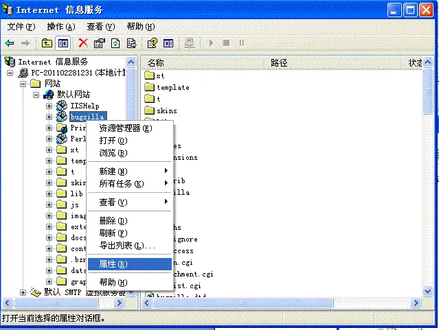 在bugzilla中鼠标右键选择属性如图