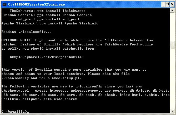 若安装成功将会在bugzilla目录下生成一个localconfig文件。