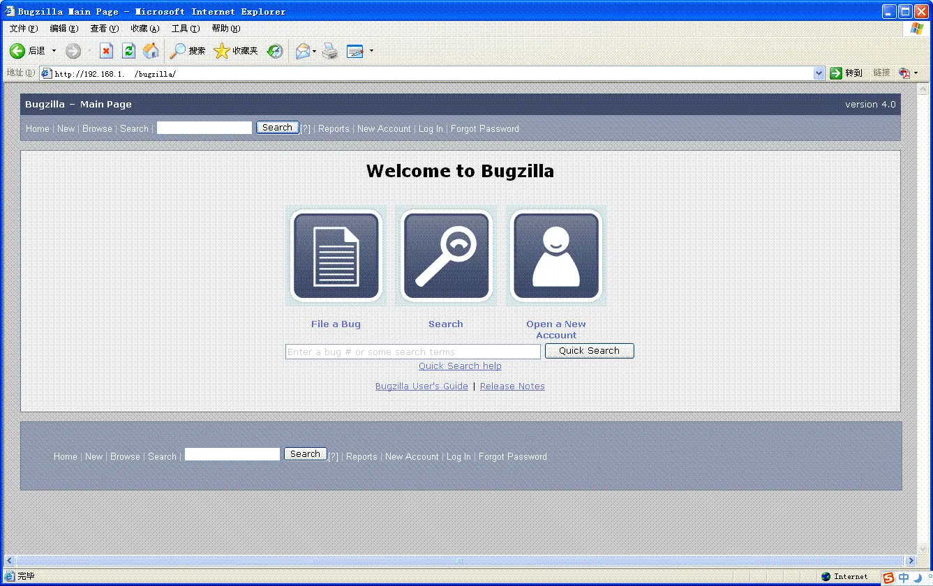 就可以登陆bugzilla的页面了,打开一个网页,输入网址你配置的服务器地址http://192.168.1.1/bugzilla就可以登陆bugzilla如下图