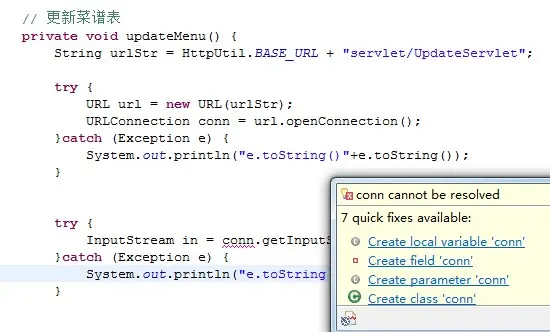 然後在Try 裡面 conn = url.openConnection() 就不會有問題了