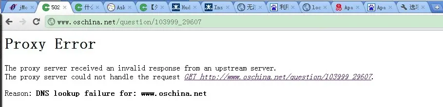重启apache后, 将浏览器的代理设置指向127.0.0.1:80,然后访问www.oschina.net,出现如下的错误