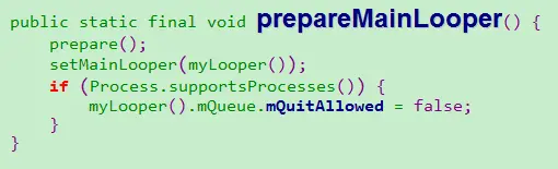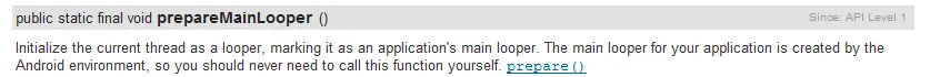 但是我们在源代码中看到的是 Looper.perpareMainLooper();查找文档: