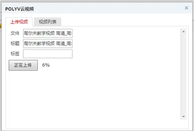 分别有上传视频,和视频列表(上传到保利威视的视频都在视频列表里显示,