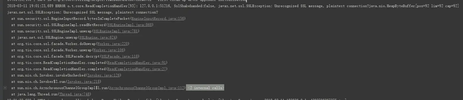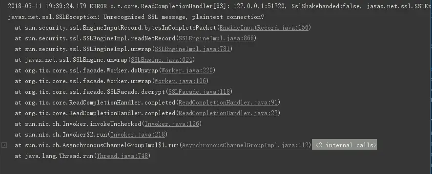 添加了服务端的ssl后,客户端连接成功后,只要客户端一发送消息,服务端就报错: