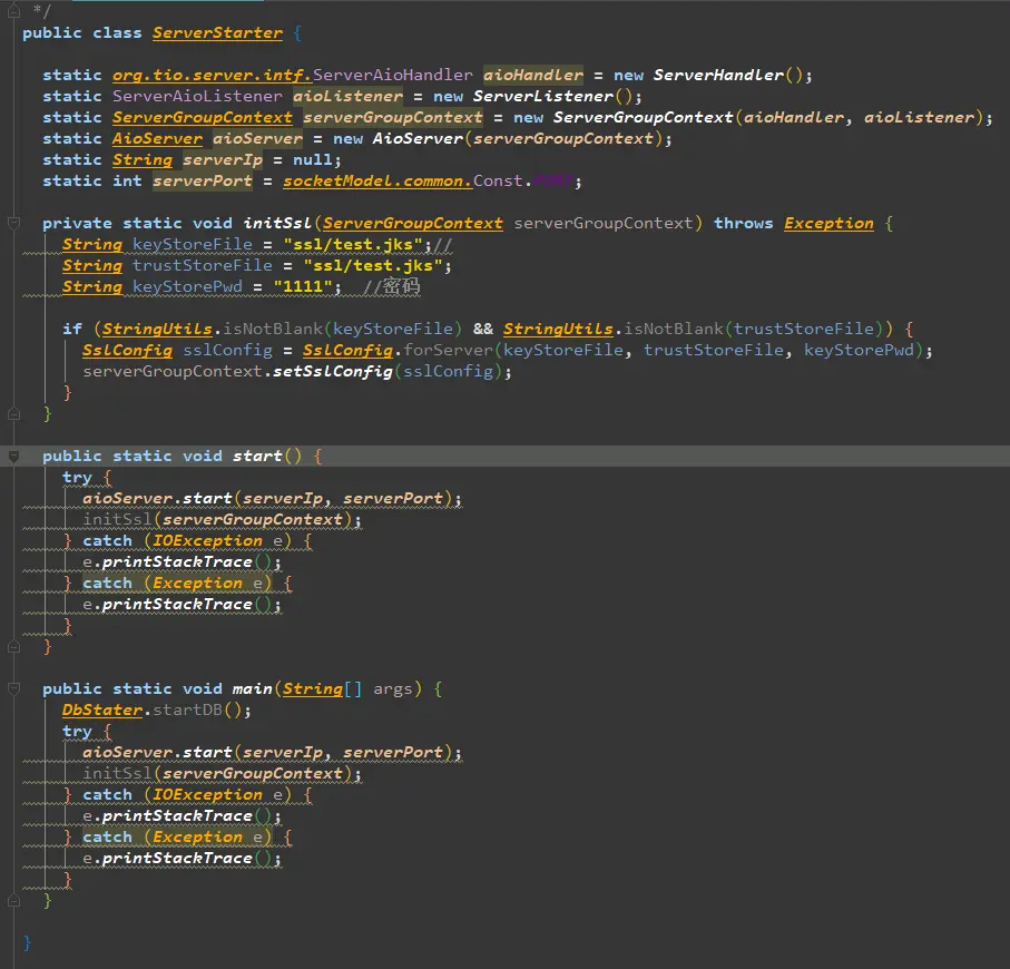 本人仿照t-io的helloworld的例子写了个工程,socket的不是http的。不加ssl的时候服务端和客户端都没有任何问题。