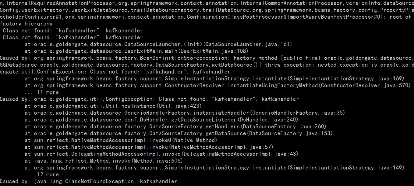最近使用ogg同步数据到kafka,配置文件已经配好,启动目标端的extract时报错: