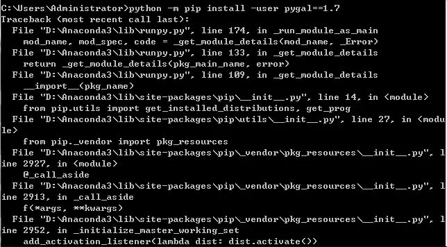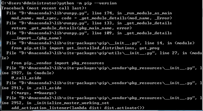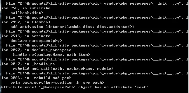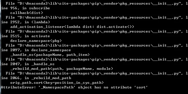 显示是D:\Anaconda3\Lib\site-packages\pip\_vendor\pkg_resources路径的__init__出错。