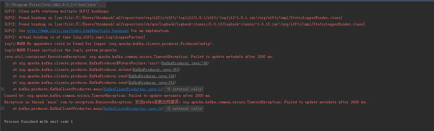 Causedby:org.apache.kafka.common.errors.TimeoutException:Failedtoupdatemetadataafter2000ms.