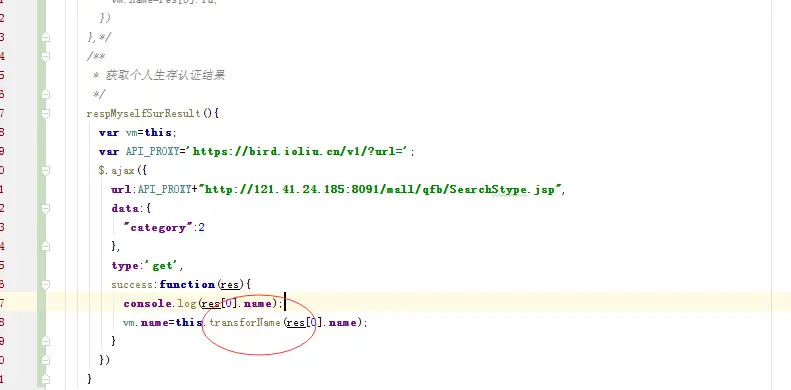 我之前标注的这条语句因为前面已经定义了这句 ,得这样引用vm.name=vm.transforName(res[0].name)才是正确的,希望能对后面有此帮助的人有用