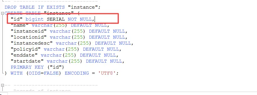 BIGINTSERIALNOTNULL 改为bigserial就行了