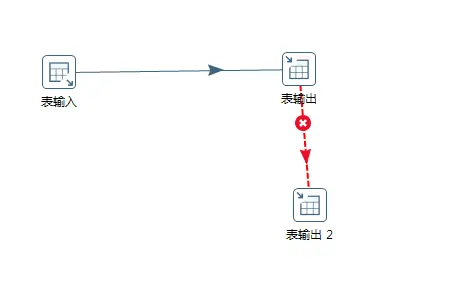 流程是这样走的:表输入查出来的数据,保存到表输出里面。假如查出来的字段过长,那么表输出的时候就会报错,这下表输出2就会生效了。