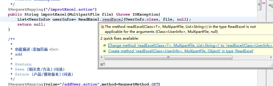 ReadExceI类需要实例化方法的类型参数声明错了吧,试试这个