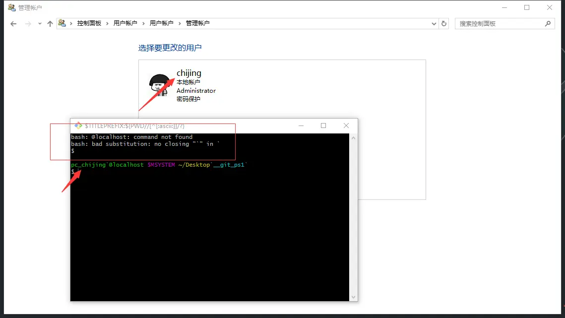 当我注意点错误提示上,我的电脑用户名上莫名其妙多了个 ‘ ,我就去修改了用户名,再次重启,卸载git,安装git,但仍然报这个错误。而且报错上面的用户名 名字没有发生改变,哪位大神知道原因啊?????