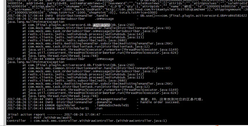 @JFinal 你好,想跟你请教个问题:我的代码中报了空指针异常,异常处图