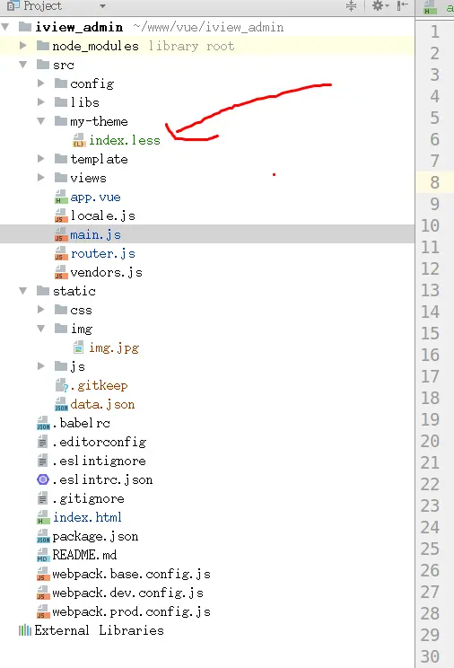 需要给webpack配置less,可以参考https://github.com/iview/iview-project的webpack配置
