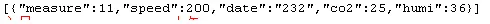 Stringflag="[{\"measure\":11,\"speed\":200,\"date\":\"223\",\"col\":25,\"humi\":36}]";