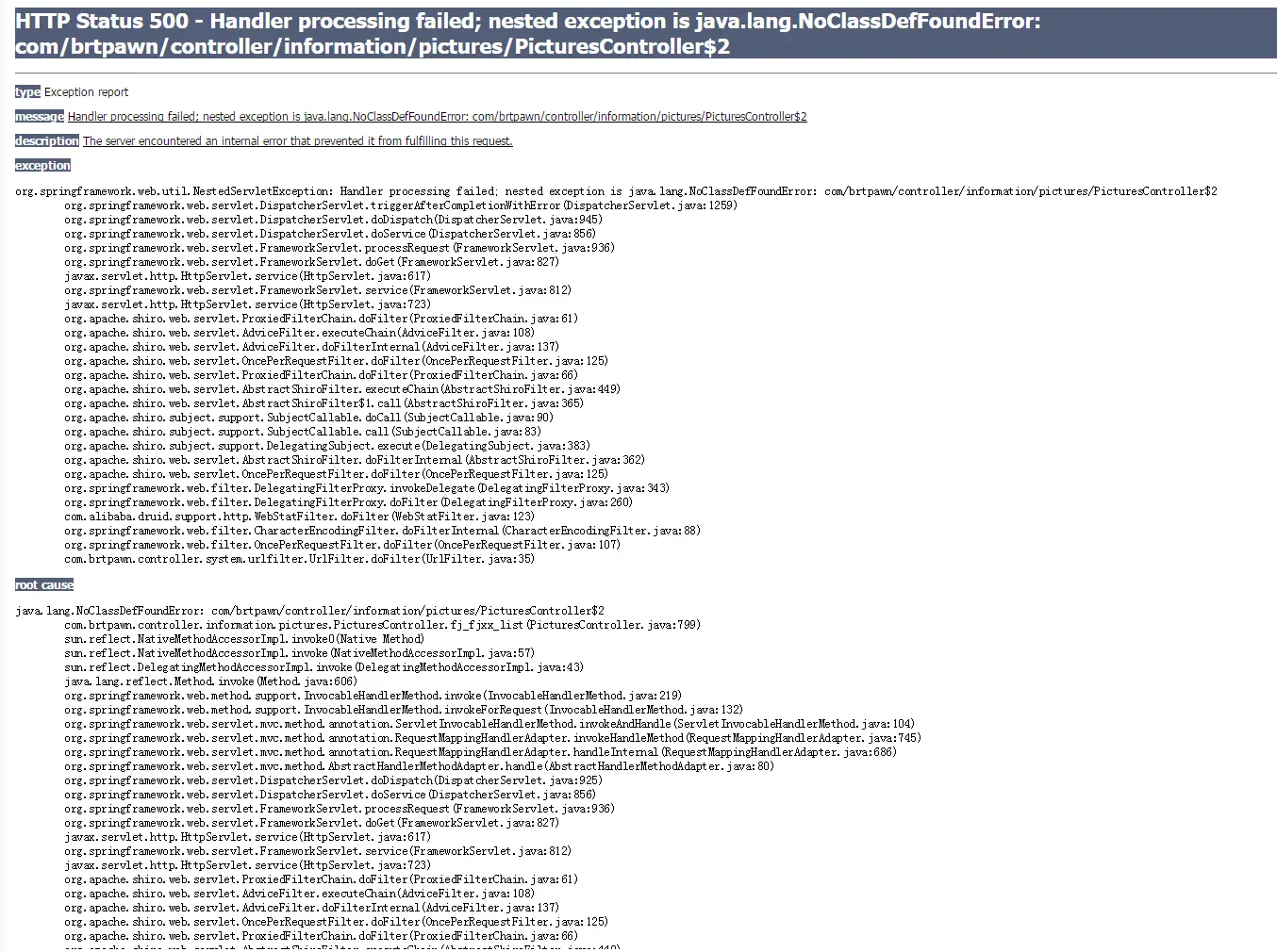 解决了,最后用jdk6编译才好用。。不知道这个类是肿么了应该是你匿名内部类没有复制完,或者没编译导致的,PicturesController应该有多个.class,比如PicturesController$2,有几个内部类就有几个文件($+序号)个文件件