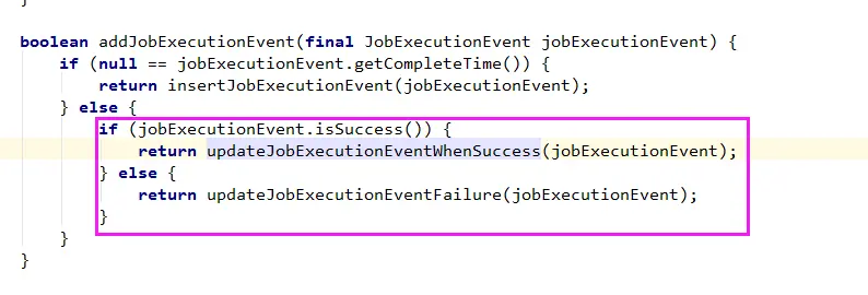 但是我还是觉得这里面有一个奇怪的问题就是由于开启和结束是两个线程在跑,如果我的任务只是一个异步调度,也就是执行和结束都是非常快的情况,有可能会出现结束时间比执行时间早哦。。。。不好意思,由于我修改了源码,而没有考虑到发布事件监听在获取值时多线程的情况下获取到的值是属于线程独立属性,由于一些基础属性值不同步导至一直报错,经过debug已经修复问题。谢谢第二个问题知道了哎,最终还是自己发现了问题。这个问题主要是来源于我改了他的源码 JobExecutionEvent这个类的ID的赋值造成的。我是不喜欢UUID,所以改成了自增,当入库成功后再赋值给他就会有问题。因为是多线程操作,当任务执行快时。他的修改操作可能在你还没有赋值ID时就已经发布了。这个时候这个对象就是线程的单独实例,因为线程的可见情况下。这时候再修改是没有做用的。所以导致更新时ID没有不能更新状态。