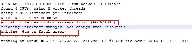 系统对每个进程可以打开的文件描述符数量有限制,可以用`ulimt-n`看下,应该是4096个。
