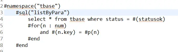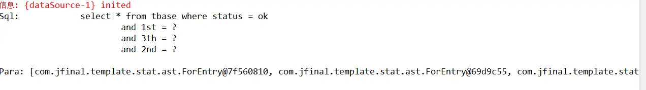 此外,sql管理功能的用法除了那三个专用指令以外,所有jfinaltemplateengine的用法全部支持,所以先看一下jfinal手册中的templateengine这一章是极有帮助的 #p指令在功能上是一直支持#p(obj.field)的,只不过在对参数类型进行判断时禁止了obj.field的形式,下个版本会去除这个禁止规则,立即就可以支持,对map进行迭代时使用#p指令是极极有用的注意两点就好:一个是表达式中永远不要出现 #号符,直接取变量就好,例如#(n.key)。