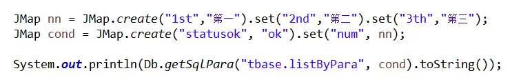 JMap condMap = JMap.create("1st","第一").set("2nd","第二").set("3th","第三").set("statusok", "ok");