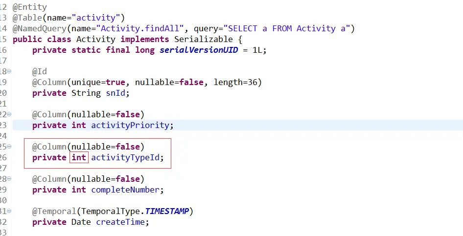 比如说,用eclipse 自带的jpa tools 生成的一个实体中生成的一个字段如下