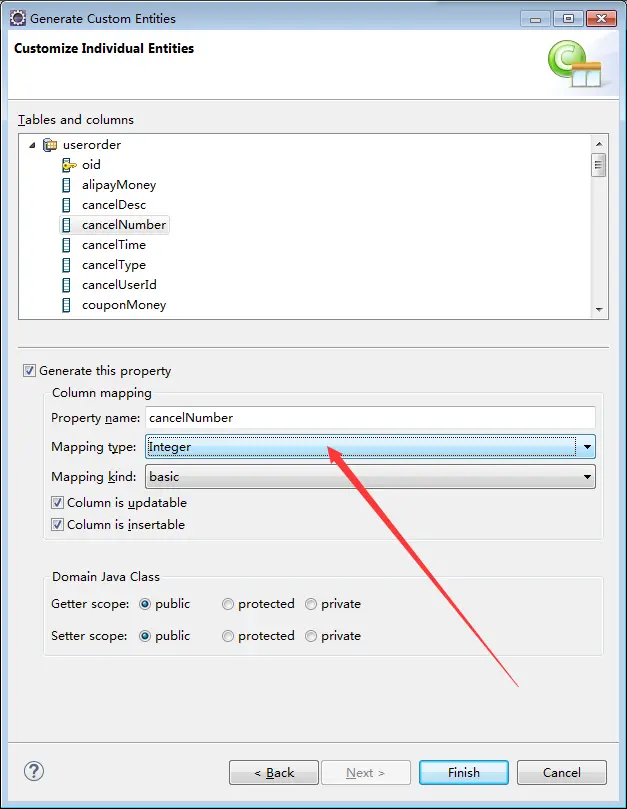 但是我想让他默认生成的类型为Integer,这如何去解决,