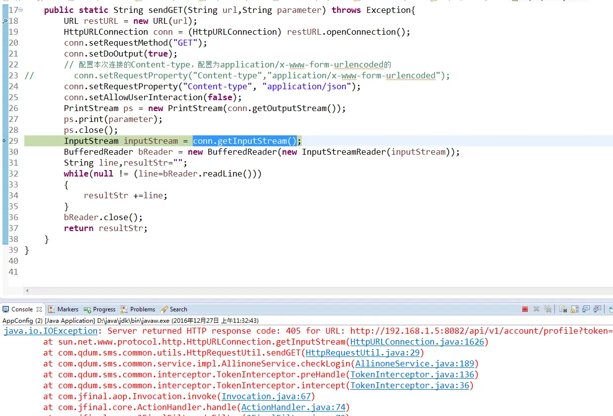 由于上面的问题没想到解决办法,我就换了一种请求方式,调用后报错:
