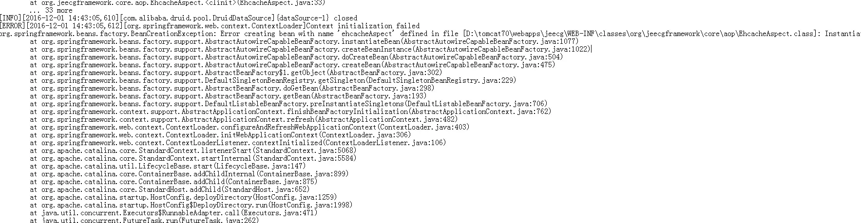 错误提示如图所示,将classes下的ehcache.xml文件删除掉就能正常启动。