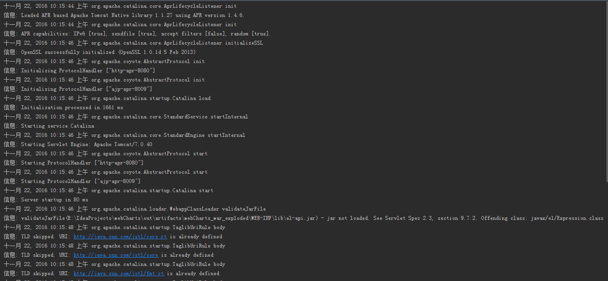 这是个三大框架整合的ssm的项目 ,初用idea做 起服器特别快 ,不像eclipse那么慢,而且也没有那么多的日志,但是目前我页面去访问Controller就一直在404. 现在这个日志感觉他也去加载Spring的东西。请帮看看 这个tomcat的启动日志 ,我的框架的东西加载上了吗