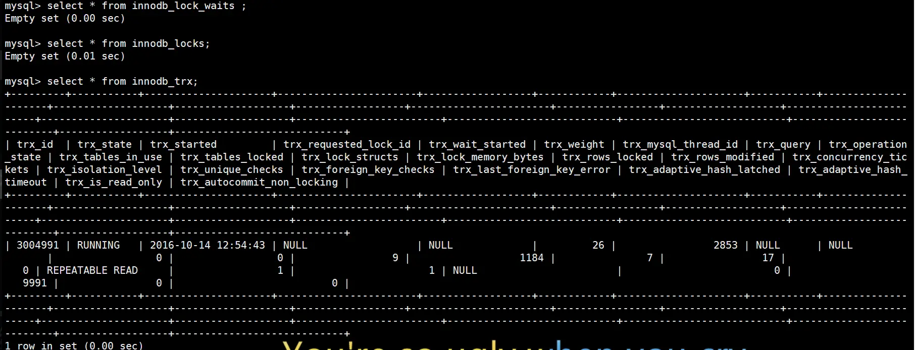 java后台更新mysql的库时, 多个线程更新同一个表数据时,总是报错连接超时.查看锁见图, 没有锁住,但是trx表一直有一条数据在那. 为什么? 求大神指导.