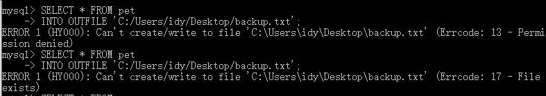 ERROR1(HY000):Can'tcreate/writetofile'C:\Windows\mysq.txt'(Errcode:13-