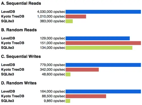 mysql都没学会...有空看看leveldb######leveldb 这么棒? 没用过哦...######leveldb, bravo, bravooooooooo! ######对进行比较的这几个选手的选择感到奇怪。为什么不是和mysql,mongodb之类使用率比较高的数据库进行对比呢?sqlite3? Kyoto Cabinet’s?我真不太熟,求指教。######leveldb的定位于mysql和mongodb差别很大,leveldb更类似于memcached/redis,属于kv的缓存,sqlite轻量级在本地小规模缓存和数据存储用得多,至于KC,确实选择的有点。。。,IMHO其实能和memcached/redis benchmark下更有价值######