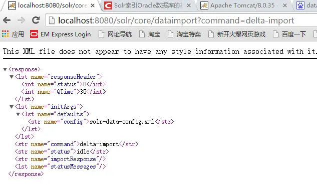 用这个命令报错404,然后再路径上补了core。用命令查看导入情况?却返回xml格式了。什么鬼? 不晓得导入进去了没有