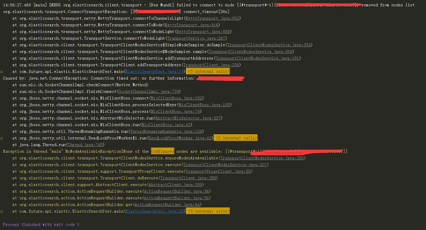 浏览器访问是可以的,但是在java代码中操作es报错,说没有可用的节点。google了下相似的问题,但答案都没能解决这个问题,如有高手知道请指点1 2,谢谢