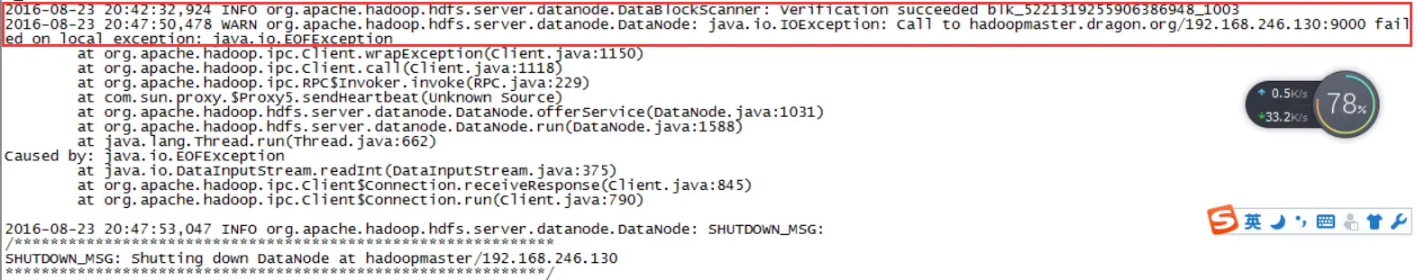 1、连接hadoop-master.dragon.org/192.168.246.130:9000失败。建议你用jps查看进程是否起来