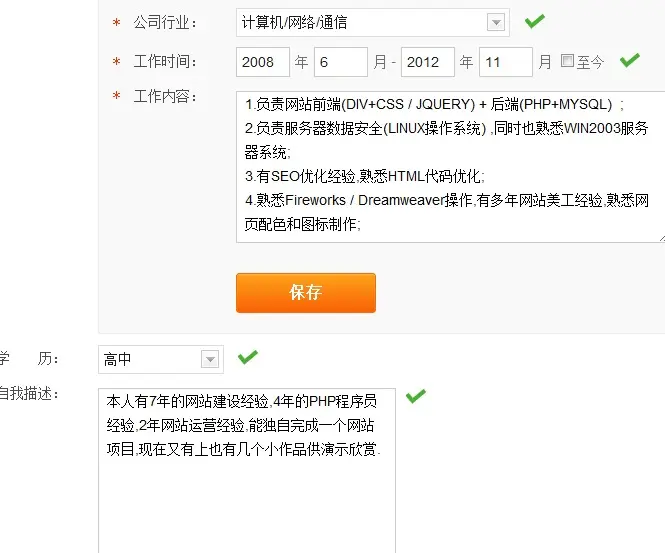 PS:这边都是一些制造业,IT行业真的很少.高中就想创业,所以没继续念大学了.网站的技术都是自己自学的,没有相关的文凭,不过就懂得知识范畴内,我觉得自己比很多人都厉害.