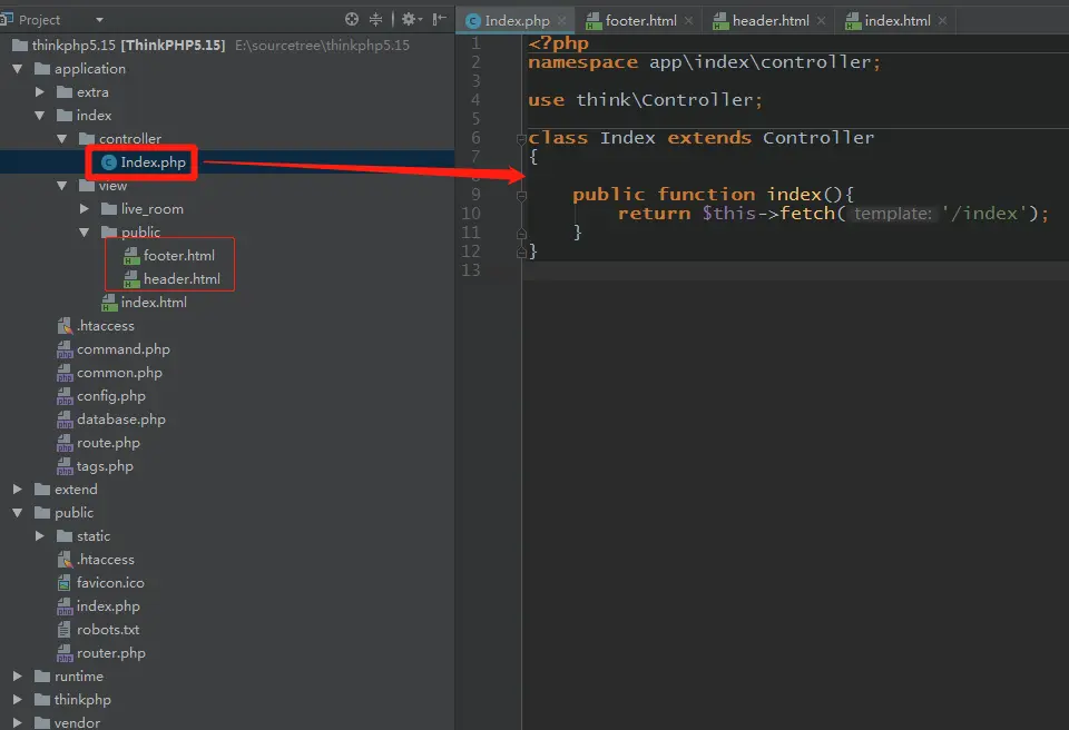 如图,我在tp中index模块中访问index中的方法,渲染view里面的index.html。但是我想同时也加载public里面的页头和页脚两个html,应当如何写?还是说配置需要改?