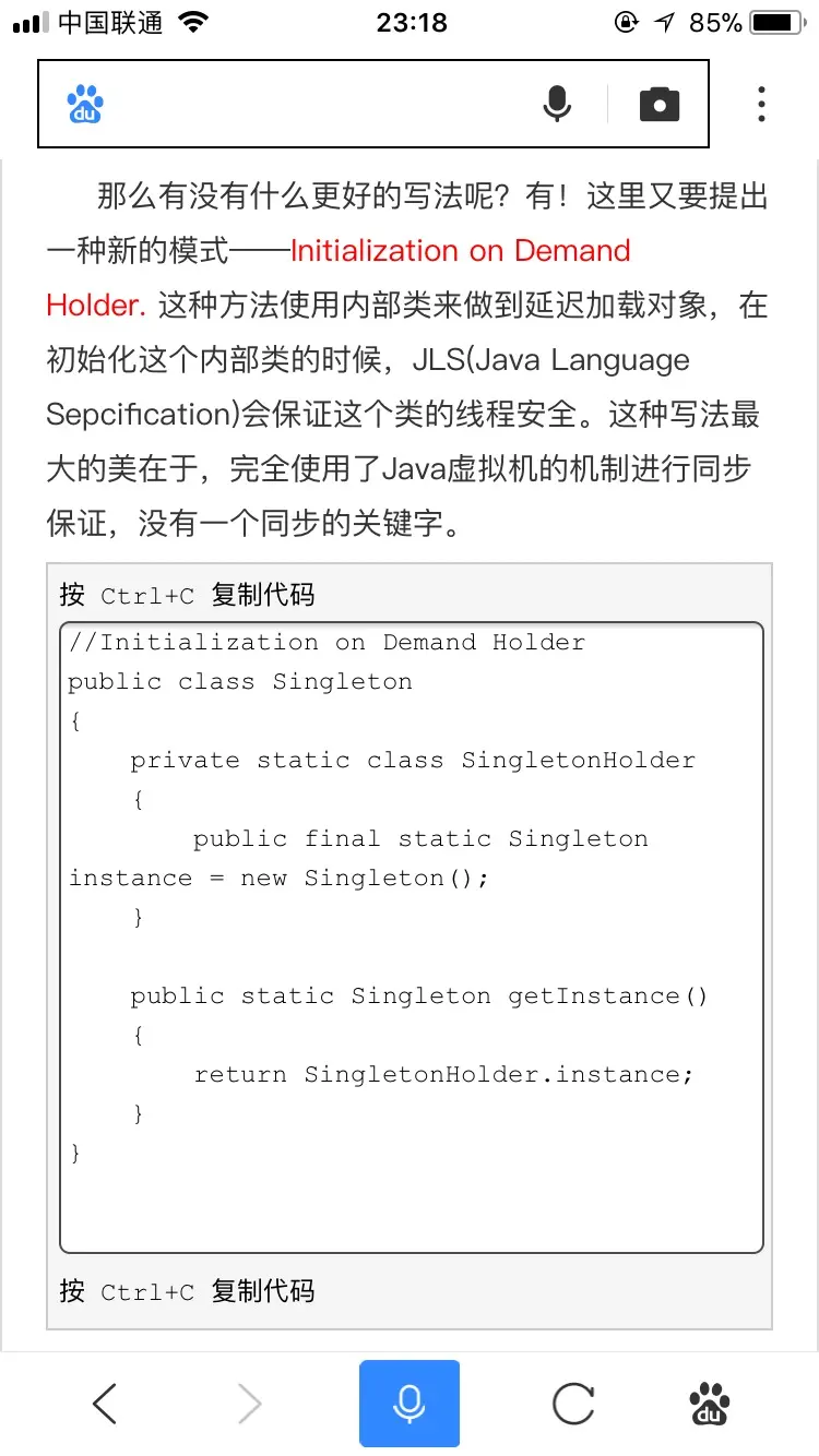 感谢这位朋友的回复,主要是第二个问题,需要实现一个线程安全的单例模式,需要懒加载模式,而且是不能出现sync和lock关键字的,我在网上找到一个类似的实例,请帮忙看下是否可行。最后能否给举个简单的代码例子,谢谢