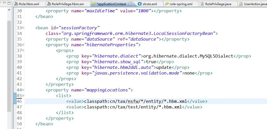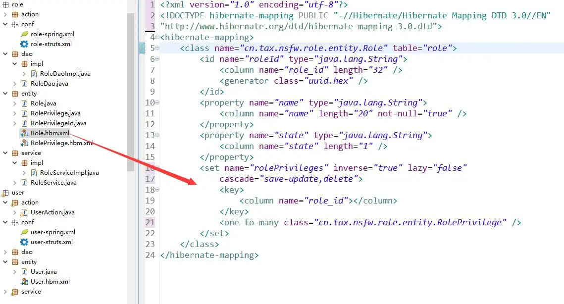 Caused by: org.hibernate.DuplicateMappingException: Duplicate collection role mapping cn.tax.nsfw.role.entity.Role.rolePrivileges