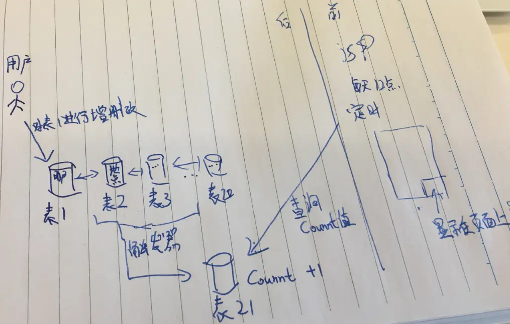 是这样设计的,为了减少每天会把表的修改扫描一遍。于是写了一个触发器,用户对表1、2等等表增删改的时候,会使表21中的COUNNT值+1。设计着,写一个定时器,每天定时查询表2的值,每天一次,并显示在页面上。现在问题在定时器的写法上,由于是小白,存储过程的部分培训的时候,没有好好听,希望大神们可以给讲一下,这个定时器应该要怎么写。谢谢