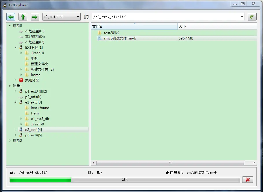 支持ext3/ext4文件系统读取; 支持浏览文件,复制文件,复制目录,不支持任何写操作;对源文件系统也没有任何写操作;