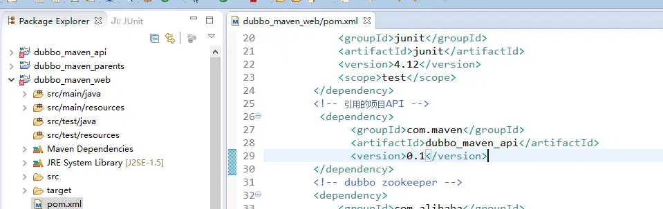 api通过maven的deploy自动打包上传到nexus仓库,然后在web项目的pom.xml中引用,如图: