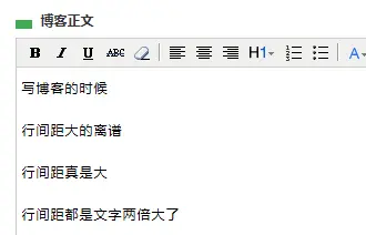 你这是段距。。。在编辑器里回车是产生一个P标签,按下shift + 回车才是产生一个BR标签。所以如果你要换行的话,就不能只按回车键了。