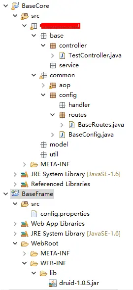 我想用多工程的方式搭建项目,web proje 引用 java project JfinalConfig写在,java project 如图