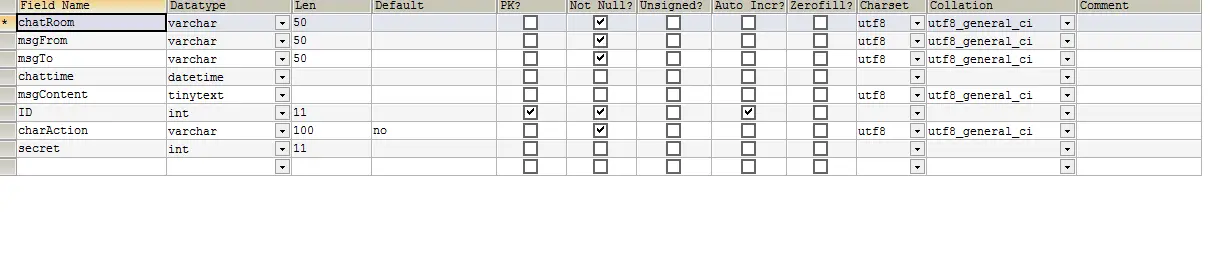 ou have an error in your SQL syntax; check the manual that corresponds to your MySQL server version for the right syntax to use near '15 ID from msgInfo where chatRoom='dragon inn' Order by chatTime DESC) order by ' at line 1