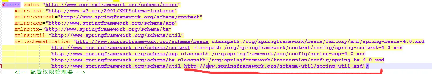 c、部分使用jar包,部分使用网络,报一样的错误,Caused by: org.xml.sax.SAXParseException; lineNumber: 11; columnNumber: 116; cvc-elt.1: 找不到元素 'beans' 的声明。报错对应的行对应的是Util这一行,在全部换成网络获取Xsd时,http://www.springframework.org/schema/util 这个网址可以在eclipse中打开但是http://www.springframework.org/schema/util/spring-util.xsd 这个在eclipse内置浏览器不能打开,换成全部换成jar包下面的XSD,运行项目依然报错。