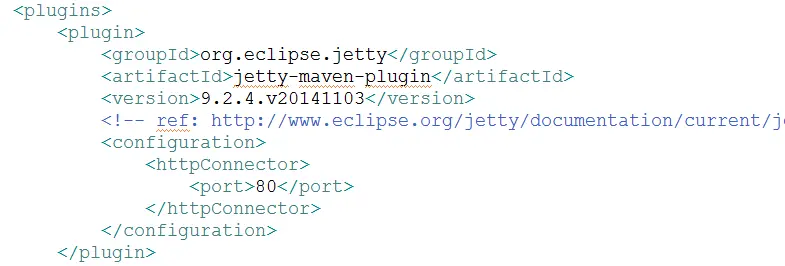 再之后我发现工程的pom.xml文件中配置了jetty插件