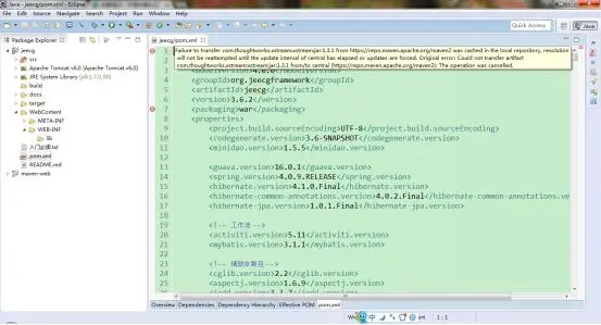eclipse导入了一个从开源中国上下载的jeecg项目,该项目为maven项目;本来eclipse是可以创建maven项目的,但是一旦导入jeecg项目就会报错,跪求各位大神???